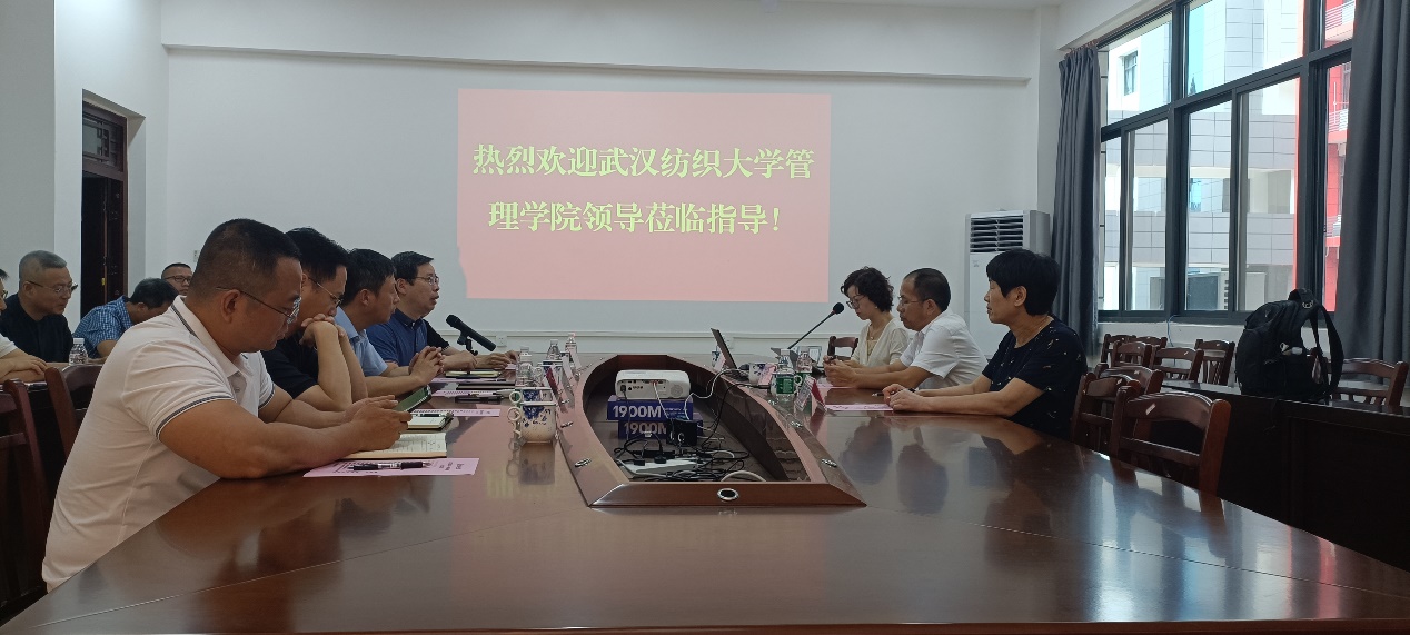 7月7日上午,武汉纺织大学437bwin必赢国际官网院长吴金红、党委书记滕胜娟、学科办主任杨筝一行三人来437bwin必赢国际官网深入交流工程管理硕士点申报工作。会议由437bwin必赢国际官网周小勇副院长主持,发规处张立国处长、437bwin必赢国际官网院长张一纯、437bwin必赢国际官网党委书记尹剑武、437bwin必赢国际官网副院长黄涛及各教研室专业负责人、科研平台负责人参加此次会议。