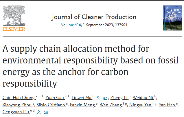 近期,437bwin必赢国际官网教师Dr. Chong Chin Hao(章景皓博士)在Journal of Cleaner Production期刊上发表题为 《A supply chain allocation method for environmental responsibility based on fossil energy as the anchor for carbon responsibility 》的学术论文。Journal of Cleaner Production是世界公认的能源环境领域顶级期刊,同是也是中国科学院文献情报中心所认定的中科院一区期刊,影响因子为11.072。该研究成果的发表标志着我校在经济发展—能源消费—碳排放的深度耦合研究中取得较大的研究进展,也标志着我校教师为推动碳达峰碳中和所做的努力获得全球同行专家的认可。