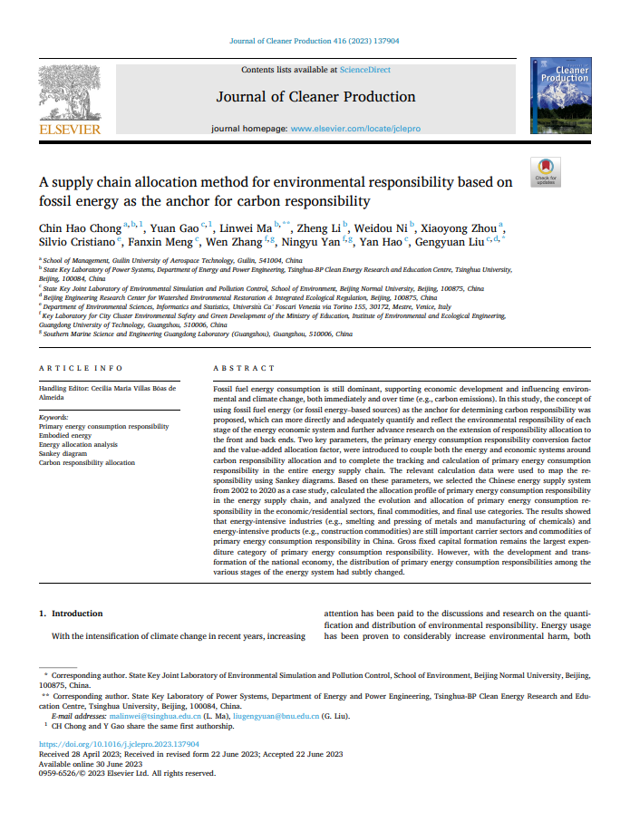 ● Chong C, Gao Y, Ma L, Li Z, Ni W, Zhou X, et al. A supply chain allocation method for environmental responsibility based on fossil energy as the anchor for carbon responsibility. J Clean Prod. 2023;416:137904.