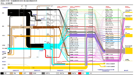 图:作者团队所绘制的2020年中国一次能源消费责任—嵌含能分配桑基图