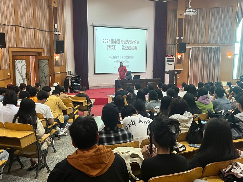 为了帮助同学们顺利完成毕业论文和毕业实习,处理好毕业论文、毕业实习与就业、升学之间的关系,2023年10月13日中午,437bwin必赢国际官网市场营销专业在北校区致远楼108教室召开了2024届市场营销专业毕业生的毕业论文与毕业实习动员大会,市场营销专业负责人马建森、副主任曹金华老师、相关老师和市场营销专业全体毕业生出席了此次会议。