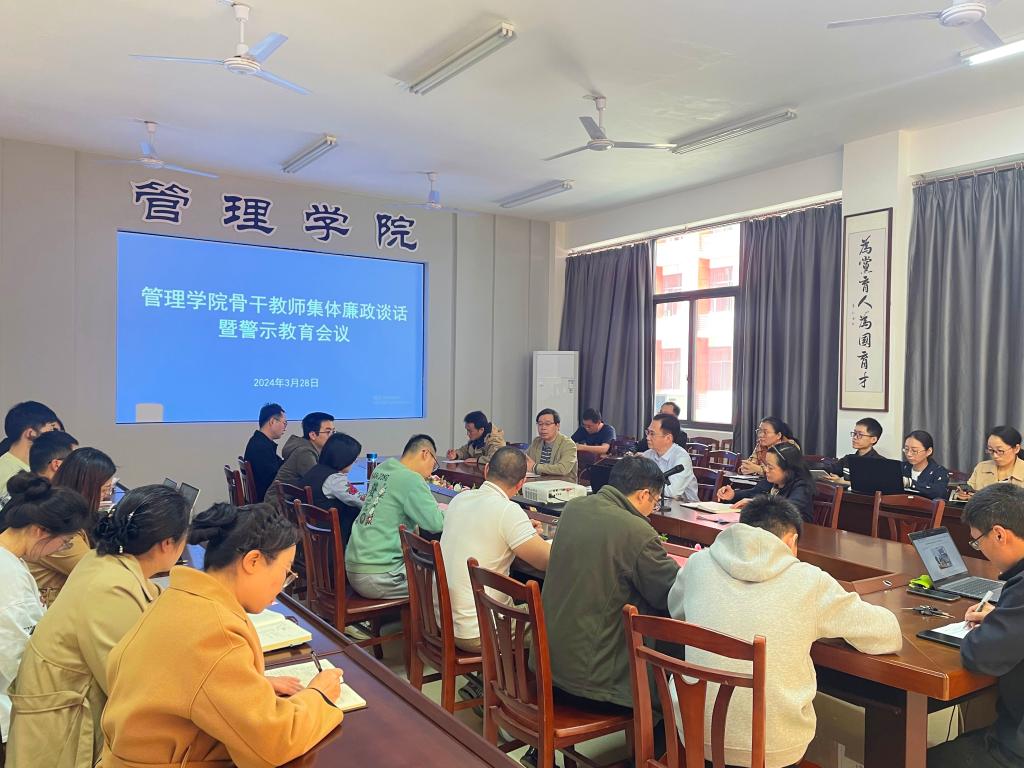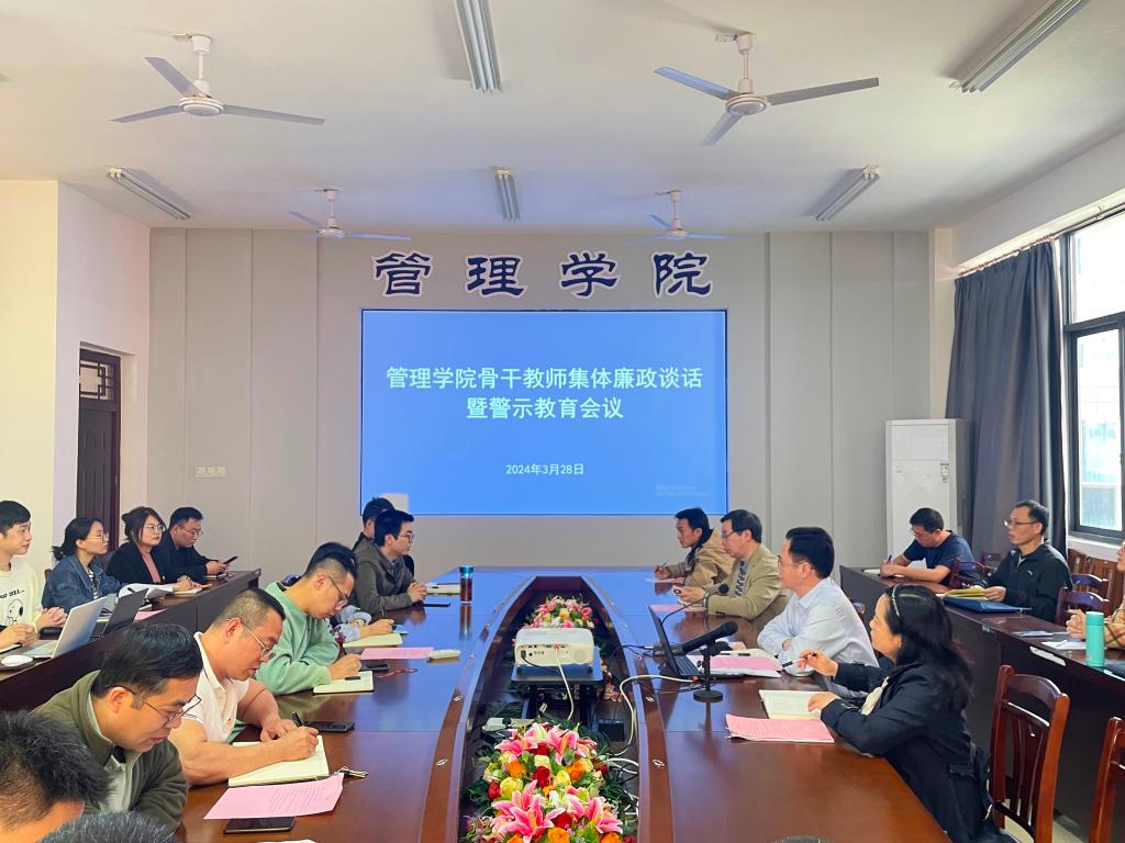 3月28日,437bwin必赢国际官网组织开展集体廉政谈话暨警示教育,学院班子成员、教研室及实验室主任、专业负责人、支部书记、教师支部委员等参加会议。