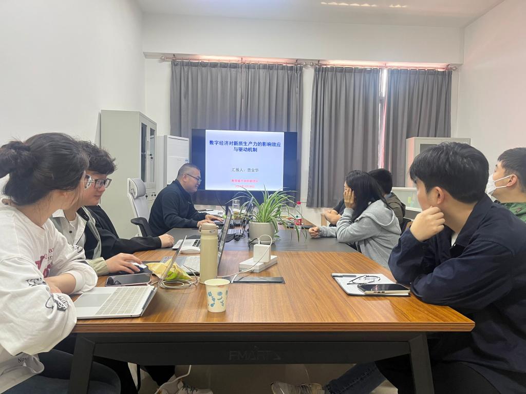 首先,曹金华老师从论文选题、研究背景、研究假设、指标选取及模型构建等方面就近期研究进展进行了汇报,随后,与会教师积极参加讨论,纷纷提出建设性的意见和建议。周小勇教授对本次学术汇报进行点评,并对团队成员科研目标提出希望和要示。本次学术沙龙促进了数智碳中和创新团队的学术交流,提升了我院的科研能力。