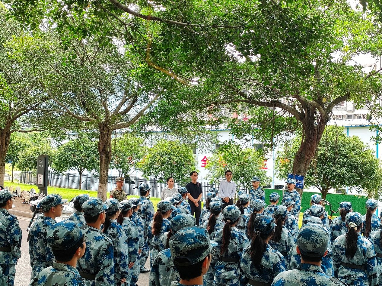 学院领导与新生们亲切交谈,赞扬大家展现出的顽强意志与昂扬士气,指出军训是大学生活的重要一课,是磨砺意志、强化纪律、凝聚集体的宝贵机会。鼓励大家珍惜训练时光,发扬拼搏精神,将军训中养成的优良作风融入今后的学习与生活。同时关切提醒同学们在刻苦训练的同时,照顾好自己的身体,注意劳逸结合。还特别叮嘱4位新生辅导员要时刻关注同学们的需求,做好思想引导和后勤保障工作。