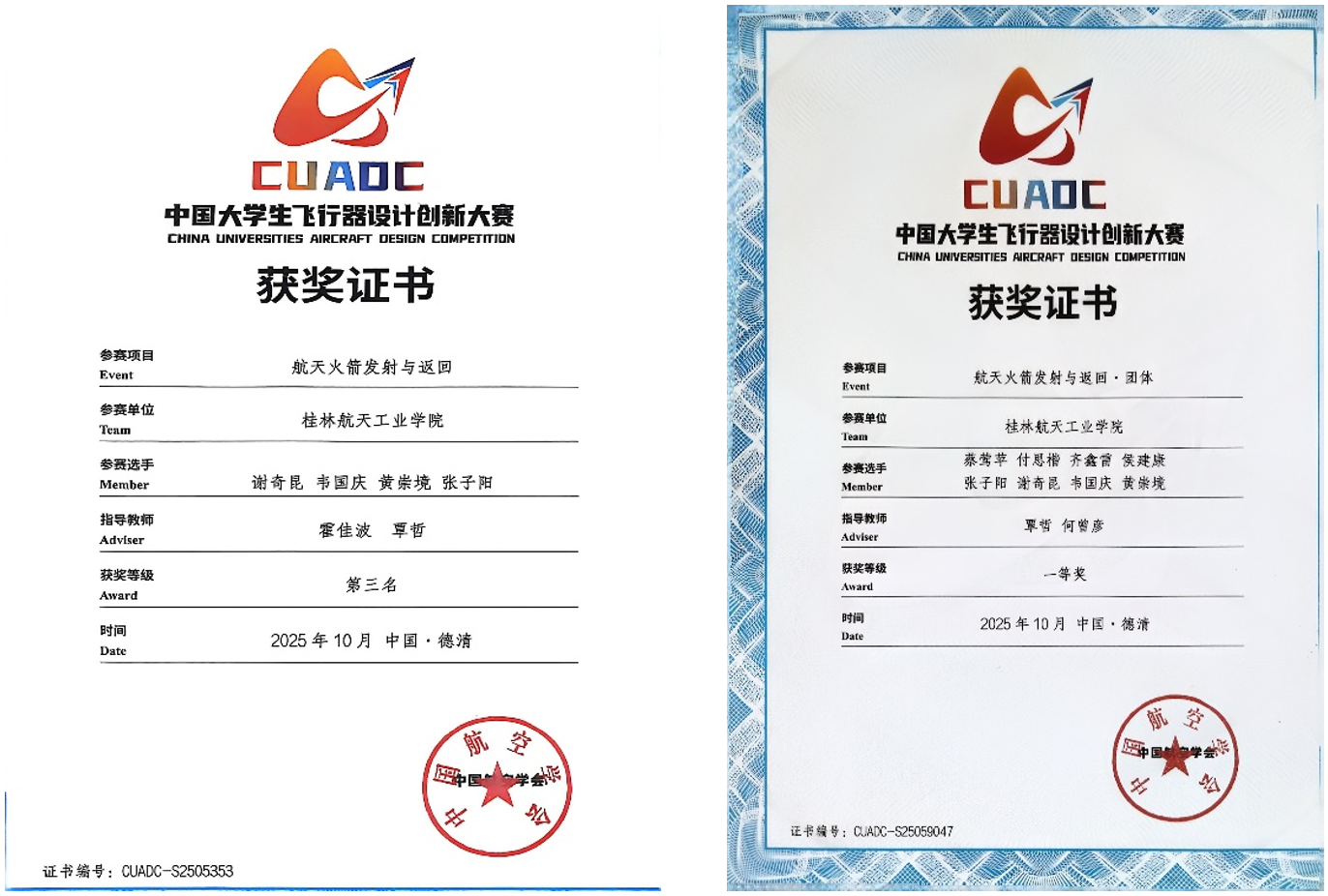近日,2025年中国大学生飞行器设计创新大赛全国总决赛在浙江德清落下帷幕。我校437bwin必赢国际官网学生蔡莺苹、谢奇昆,联合航空宇航学院、机电工程学院、计算机科学与工程学院的跨专业同学组建参赛队伍,首次代表437bwin必赢国际官网征战该项赛事。团队成功跻身“航天火箭发射与返回”及2025年新增的“物流无人机任务飞行”两大竞赛单元,不仅实现了437bwin必赢国际官网在国家级航空航天类科创赛事中的“零突破”,更以扎实的实践成果,生动诠释了学院对接低空经济、服务地方发展的人才培养初心。