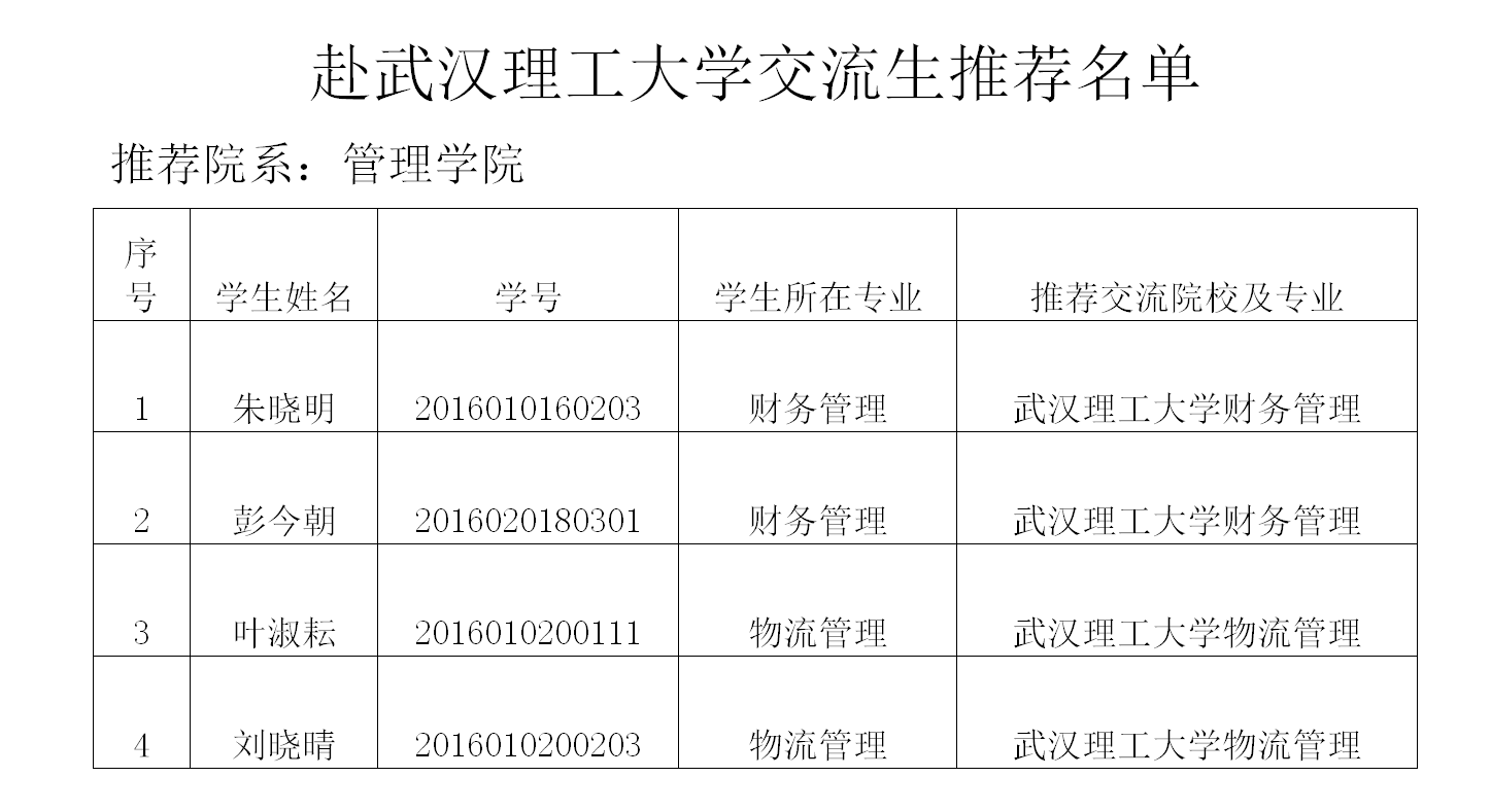 根据教务[2018]35号文件要求,我院拟推荐2018年武汉理工大学交流生名单公示如下: