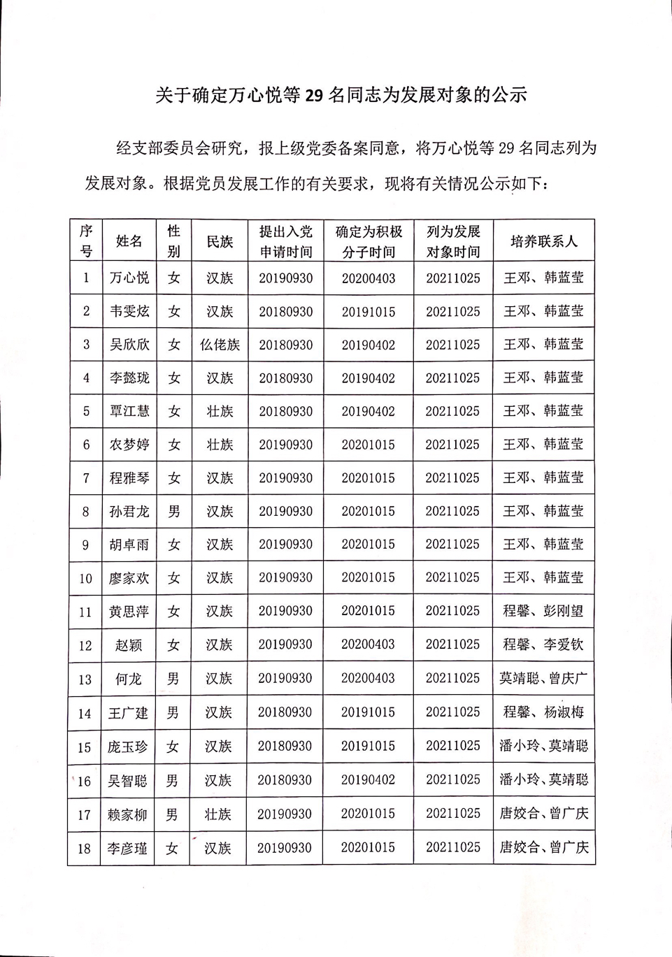 关于拟将韦黄钦妤等29名同志转为正式党员的公示